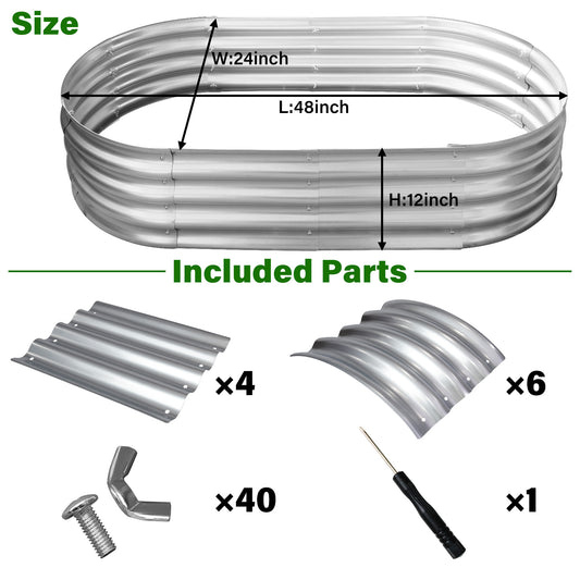 Galvanized Raised Garden Bed for Outdoor: 4X2X1ft Durable Metal Vegetable Plant Container Kit - Oval Planter Box for Gardening Flower Trough