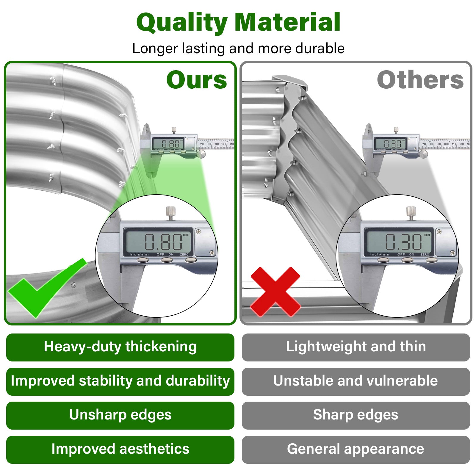 Eclaron Galvanized Raised Garden Bed—Unleash the Potential of Your Outdoor Spaces Maximize your gardening dreams with the Eclaron galvanized raised garden bed, expertly engineered for households, cities, schools, and community gardens. Designed for versatility, this iconic 4x2x1 ft bed is your canvas for year-round growth—perfect for patios, balconies, rooftops, and green communal spaces. Whether you're nurturing vegetables, planting blooms, or growing a lush herb garden, this is your next-level start to raised garden beds outdoor. Ultra-Thick Steel Construction for Lasting Strength Forged from premium Q195 galvanized steel, our galvanized raised garden beds boast an industry-leading thickness—average 0.78 mm, peaking at an incredible 1.56 mm. That’s up to 5x the heft of typical beds, providing extraordinary anti-rust, anti-collision, and weather resistance. Your metal planter will stay solid, resist warping, and outlast every growing season—making this the best choice products for savvy gardeners wanting a true investment. Smart Elliptical Structure—Style Meets Performance Breaking free from boxy tradition, our modern oval design delivers both elegance and engineering. The balanced stress distribution means fewer weak spots, giving your planter raised beds a formidable life expectancy. The secure snap-and-bolt connections prevent shifting and deformation, even after repeated assembly and moving. This is a garden planter that grows with you and your family. Serious Growing Power—Room for All Your Favorite Plants With a generous 7 cubic feet of space, you’ll easily accommodate veggies, flowers, and herbs of all kinds. The deep raised bed garden planters design is a dream for root development, superior moisture retention, and nutrient-rich cultivation. Transform your home into a vego garden, raise vibrant flower beds outdoor, or build a culinary oasis for fresh flavors at your fingertips. Healthy Roots Start Here—Drainage Done Right Every Eclaron galvanized planter features a thoughtfully open bottom, preventing water pooling and root rot. Your plants enjoy uninhibited growth, perfect oxygen intake, and robust harvests—ideal for challenging climates and outdoor garden planters users demanding healthy, happy crops. Take your passion beyond the limits of plastic beds and embrace a smarter, natural growth solution. Hassle-Free Setup for Every Gardener Our tool-free system means 5-minute assembly—just snap and bolt. The galvanized stock tank modular design makes it easy for families, seniors, and hobbyists to create their personal gardening haven. Rearranging with the seasons? Moving homes? Everything from storage to transport is a breeze. Flexible Choices for Every Space and Ambition Eclaron offers more than the classic 4x2x1 raised garden bed. Choose from single or double packs, longer or wider models (like 8ft or 6x3ft) to match everything from intimate balconies to sprawling backyards. Whether you prefer a planter with trellis for climbing plants, a multi-purpose planter box outdoor, or a bold large planter box centerpiece, the possibilities are endless. For Every Gardener—Perfect for All Skill Levels Eclaron is trusted by green thumbs, home growers, teachers, and city dwellers alike. Its rugged construction, low-maintenance design, and modern aesthetic make it the foundation of any raised beds or raised gardens project. Recommended for all who value quality, simplicity, and year-round results—compare to other top names like vego garden bed, keter raised garden bed, or wooden planter boxes. Upgrade your space with Eclaron’s garden beds outdoor: superior durability, effortless elegance, room to grow, all in one. Enjoy the confidence and joy of gardening—season after season.
