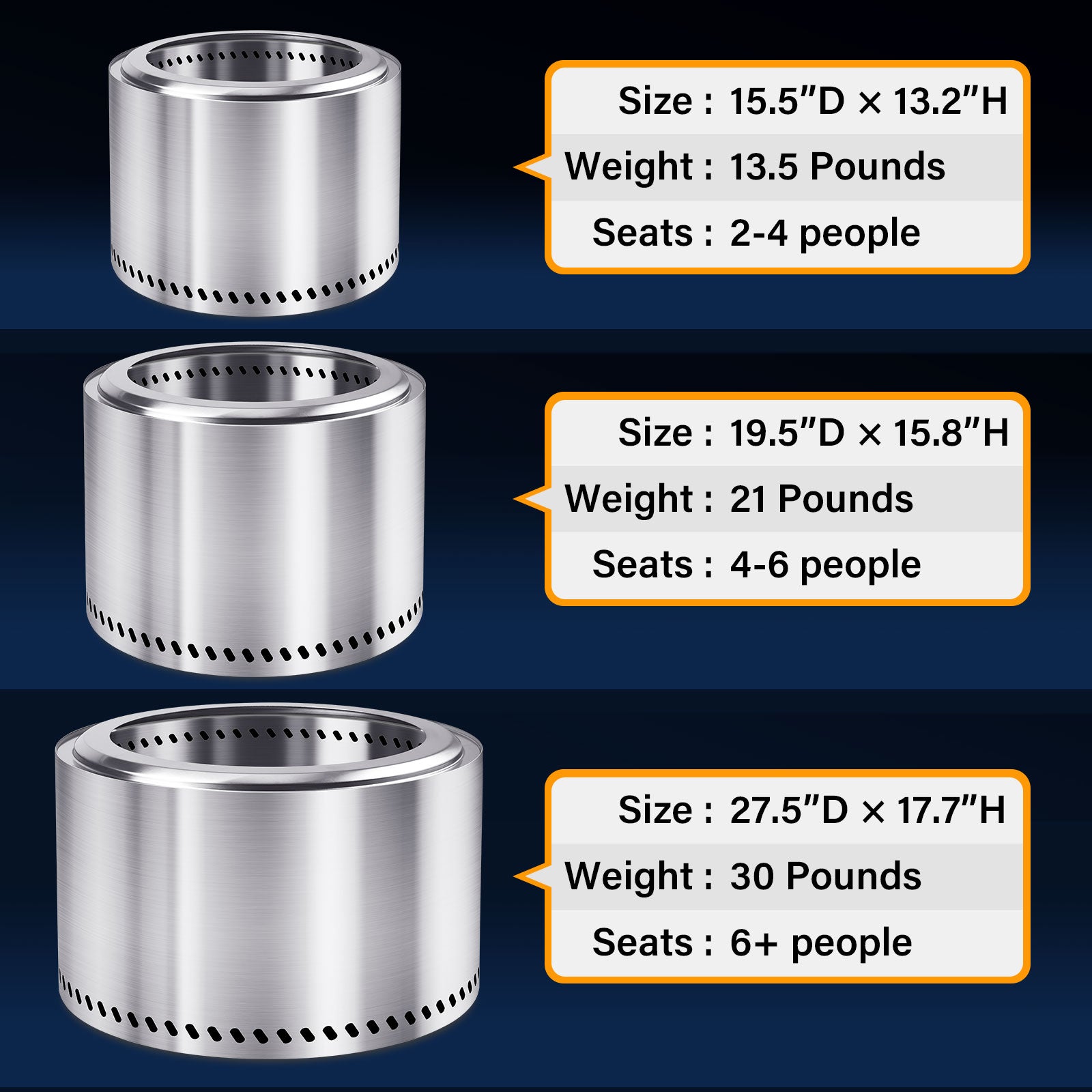 HGD 15.5" Smokeless Fire Pit Outdoor, Stainless Steel Wood Burning Firepit with Secondary Combustion, Backyard Patio Stove for Garden, BBQ & Bonfire